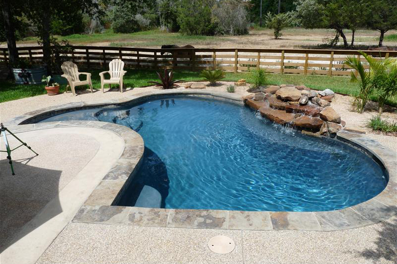 The decking is the area around the pool and is the last phase before the final interior finish is applied. There are many options to choose from depending on budget. Some examples are: Colored spray deck, concrete pavers, and various styles of Flagstone Rock.